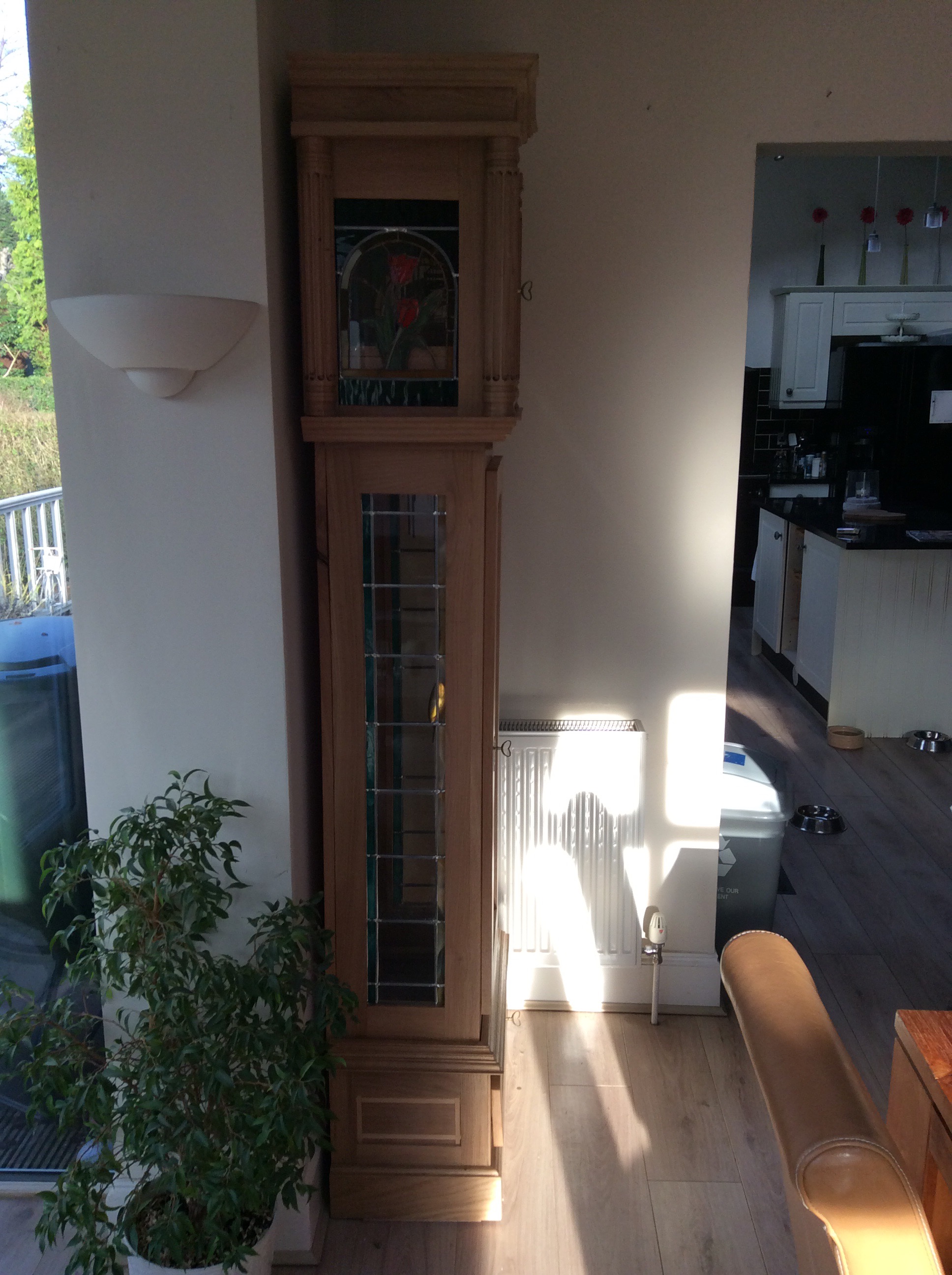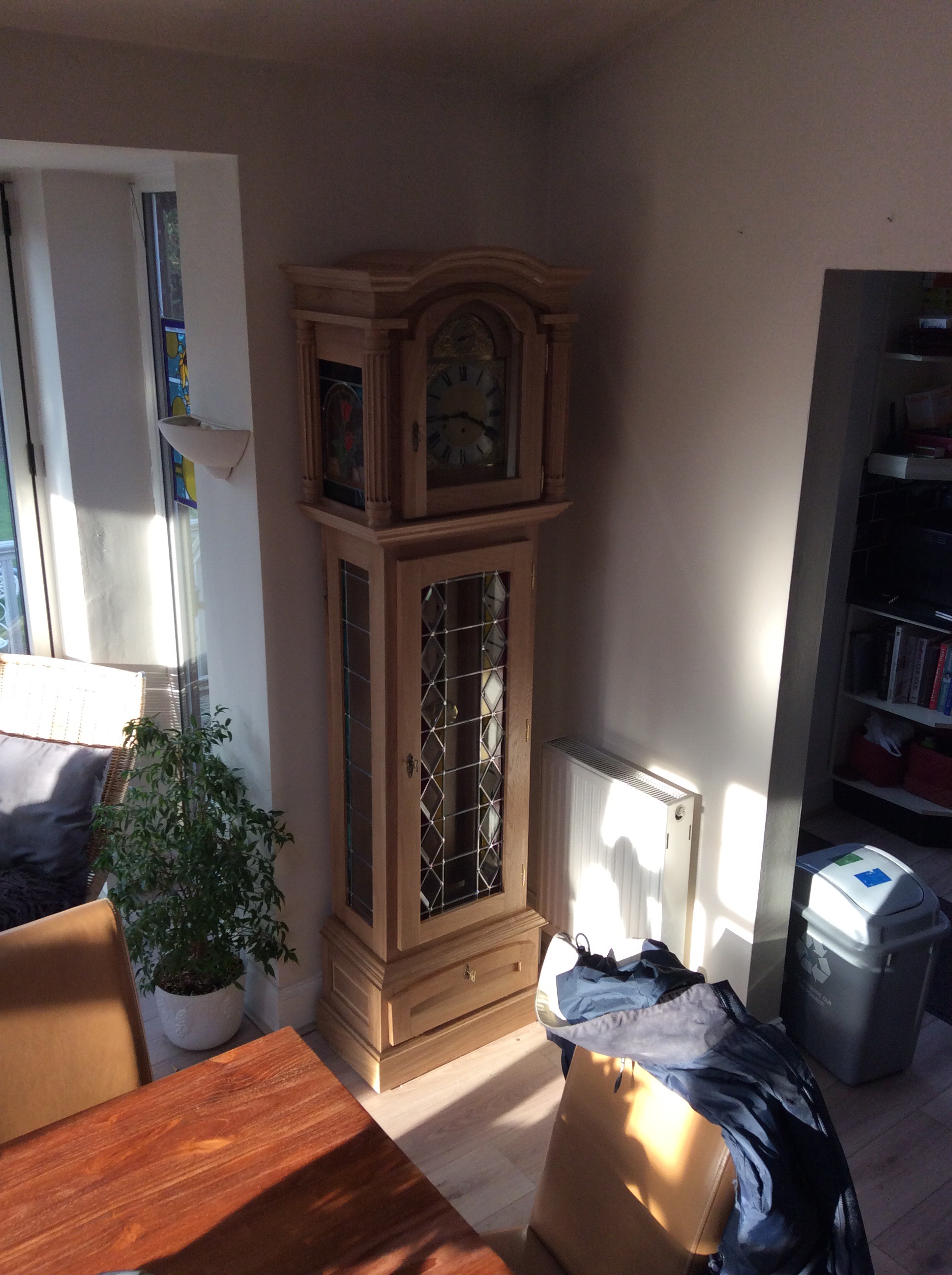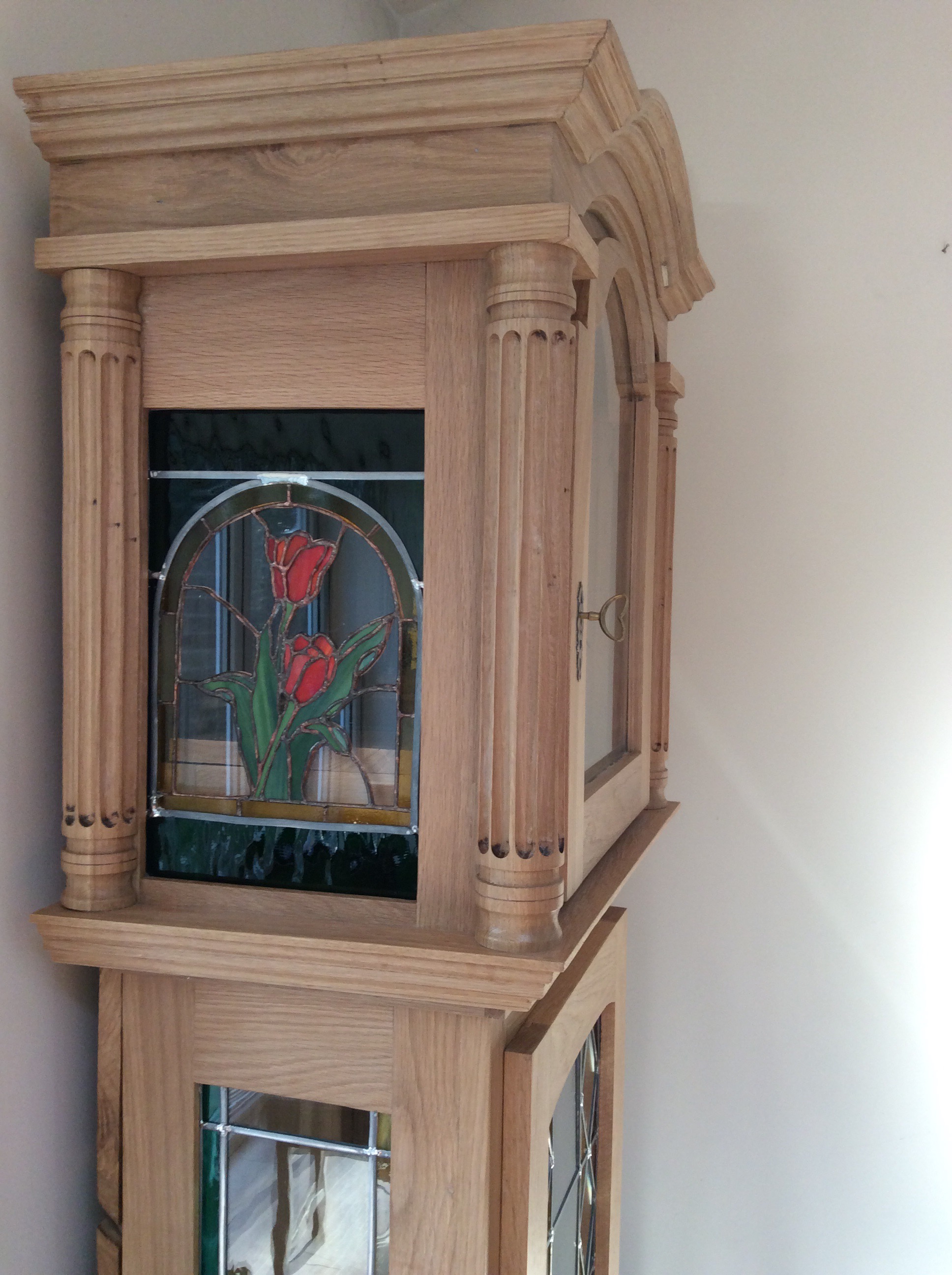 This was the first major project of 2016 and honed various new skills. Made in light oak the clock was finished with shellac and wax oil. The stained glass was completed utilising two different methods in combination, namely lead came and copper foil.